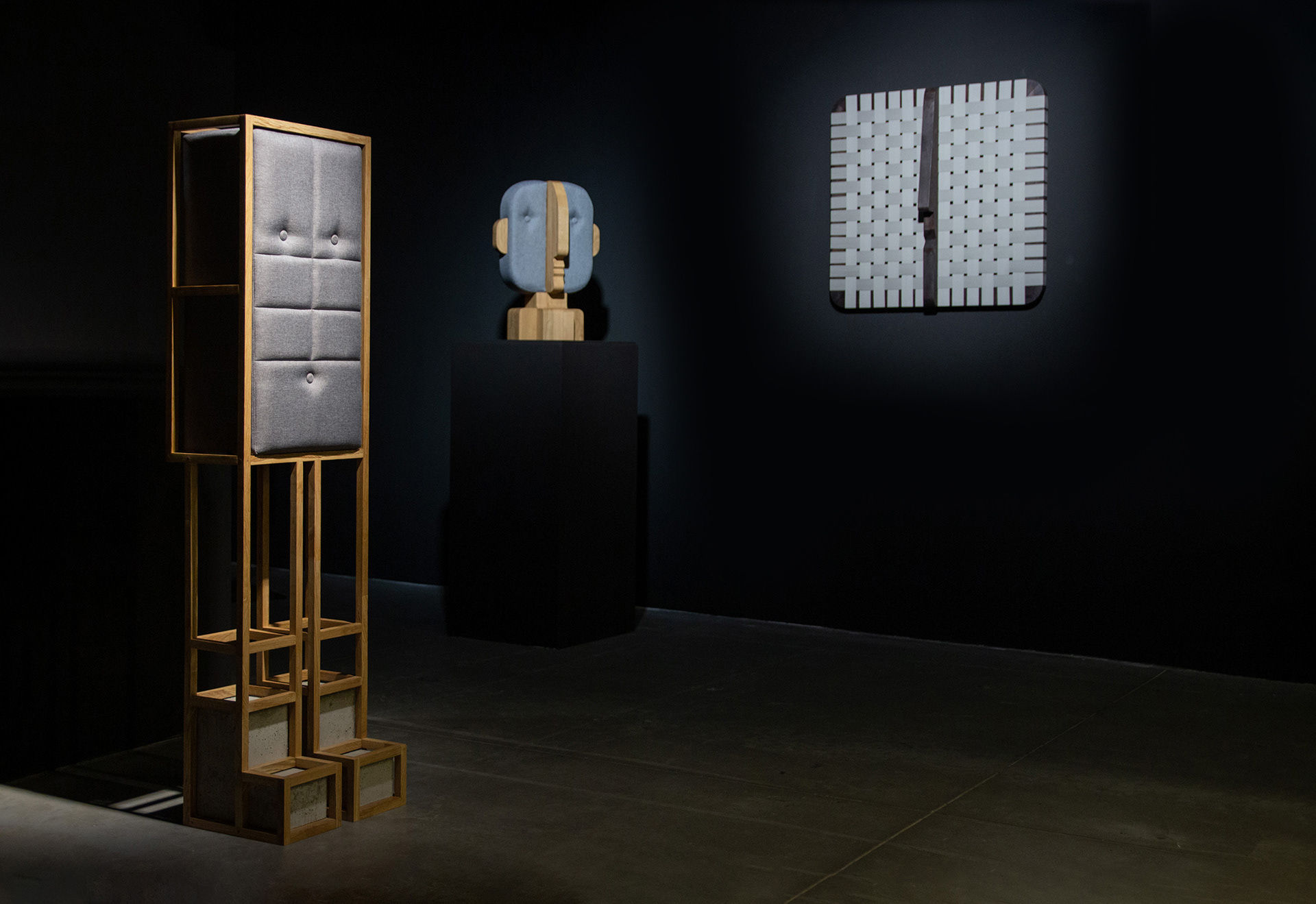 The Man Swallowed by the Sofa” explores the complex relationship between human users and everyday domestic furniture—objects that are usually passive and subordinate, yet here begin to assert their presence and dominance. In the unsettling reality of the exhibition, the domestic setting emancipates itself and transforms into hybrid sculptures: furniture grows into humans, humans shrink into furniture, the boundary between user and object dissolves. Mucha invites us to reconsider the familiar comfort of our domestic environment by revealing its latent tension and the potential for things to act upon us rather than simply serve us.