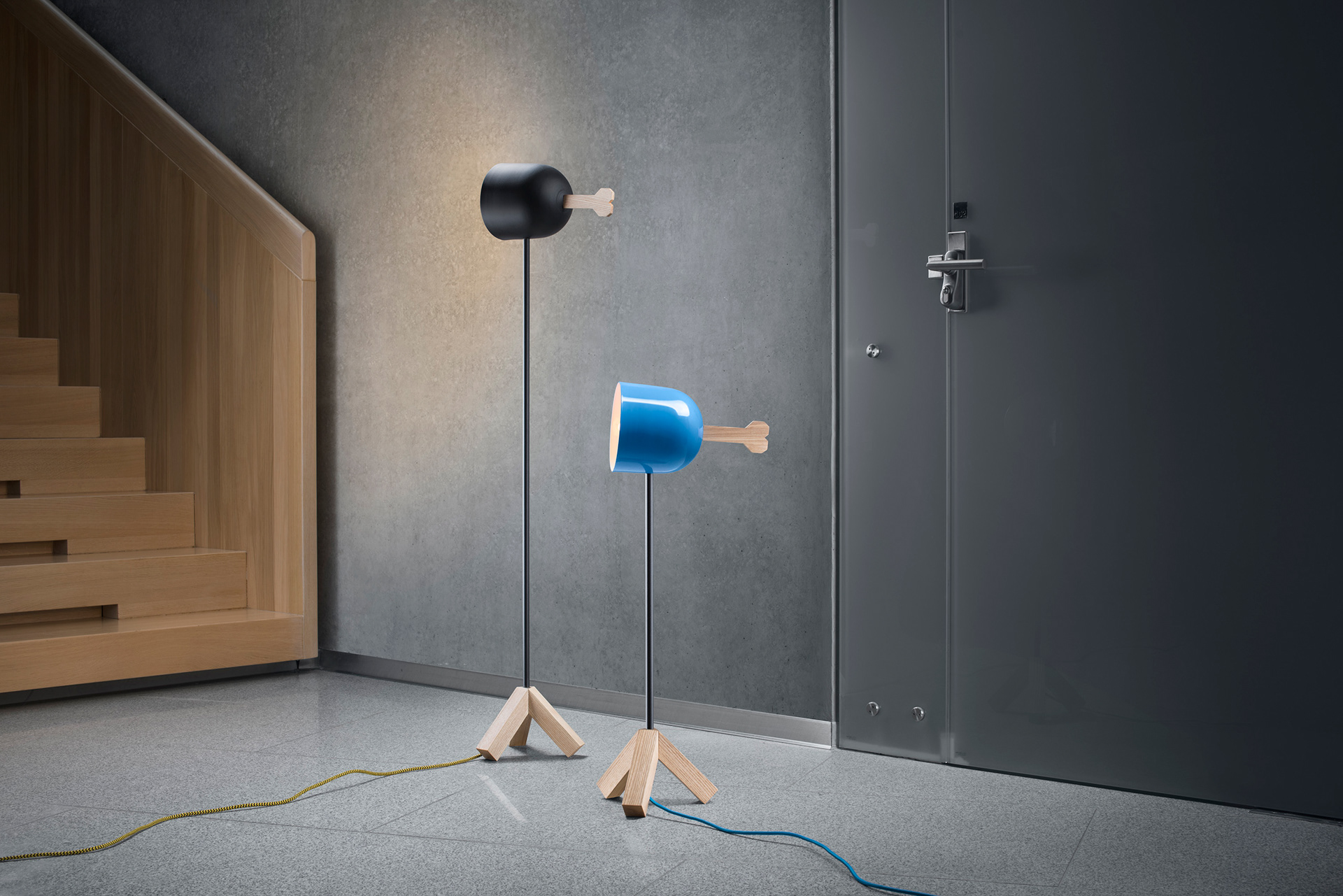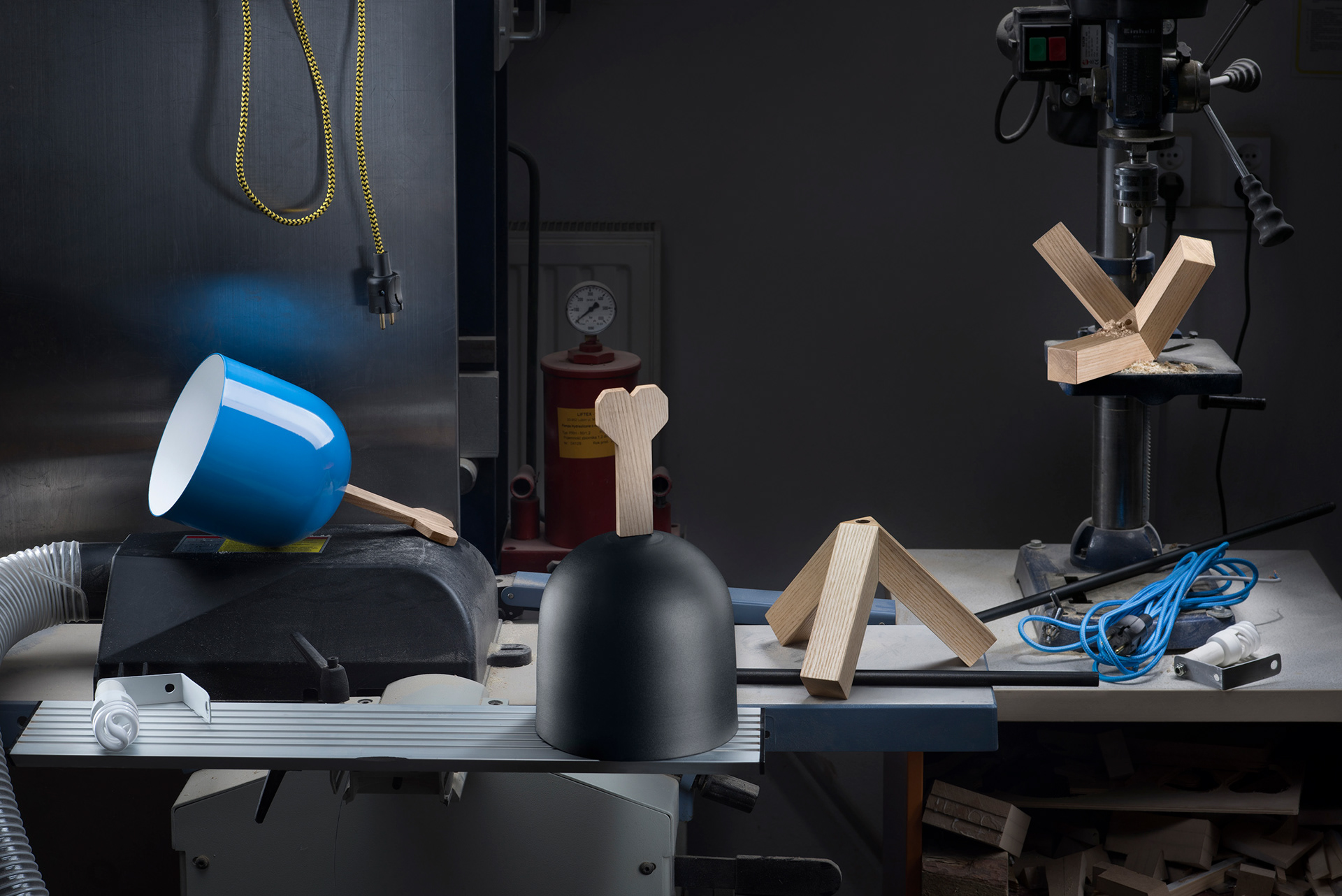 This project consists of two standing lamps inspired by the shape of a piece of meat with a bone. Made of hand-spun metal, ash wood, and powder-coated steel, they combine irony with refined form. Exhibited during the “Lessons in Design” series at BWA Zielona Góra and the Institute of Design in Kielce in 2016.